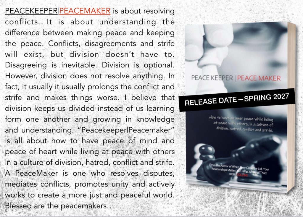 Rob Collins is a husband, dad, author and friend. He is passionate about people and believes in hope for every person through Jesus Christ. It is his desire that through this website you will explore the wide range of inspirational resources: blogs, pdf teachings, essential topics, one of Rob’s books, or an audio or video message. Rob has been married to his beautiful wife Kelly for 23 years and they have 2 daughters, Megan Brooke and Madison Grace—Rob and Kelly currently reside in Ohio.
