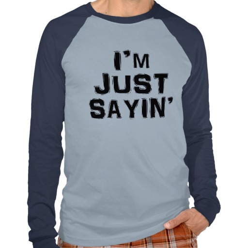 My first thought was,”that will preach!” My second thought was you could say, “I’m just sayin” about most everything in the Bible. Then I thought of a scripture that will be familiar to most. It is found in Romans 8:31 and says, What then shall we “say” to these things? If God is for us, who can be against us? I think what Paul might have been trying to say is: “If God be for us then who can be against us? …I’m Just Sayin!”